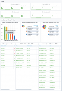 Percentual de Atendimento por dia da semana 15 dias – Visualização de lista contendo o dia da semana, nome da fila e quantidade de chamadas recebidas, ou seja, lista de forma agrupada por dia da semana quais as dias da semana cada fila recebem mais chamadas.