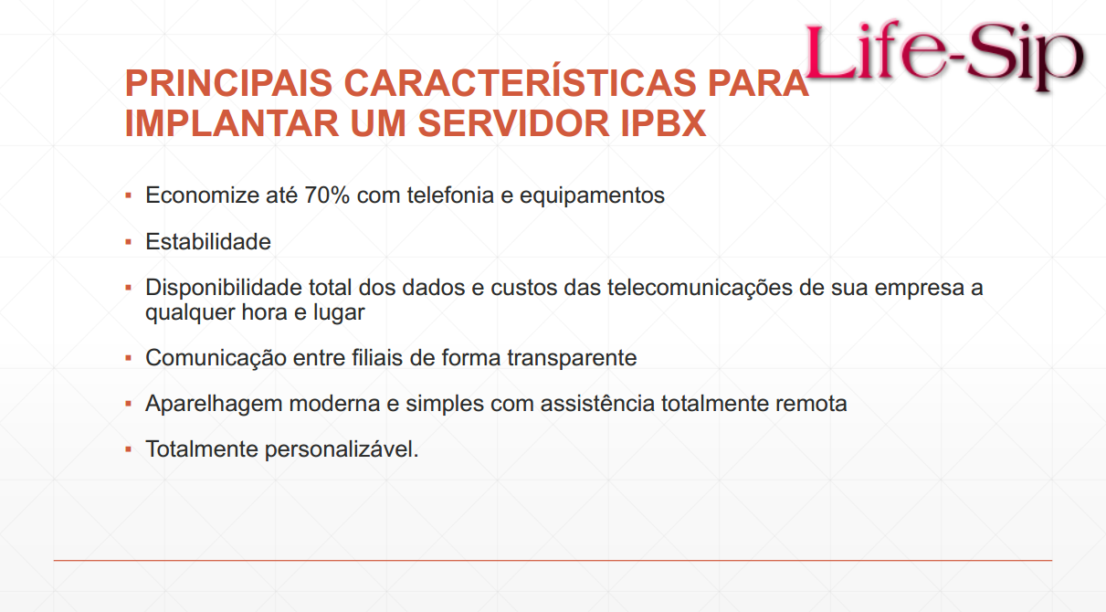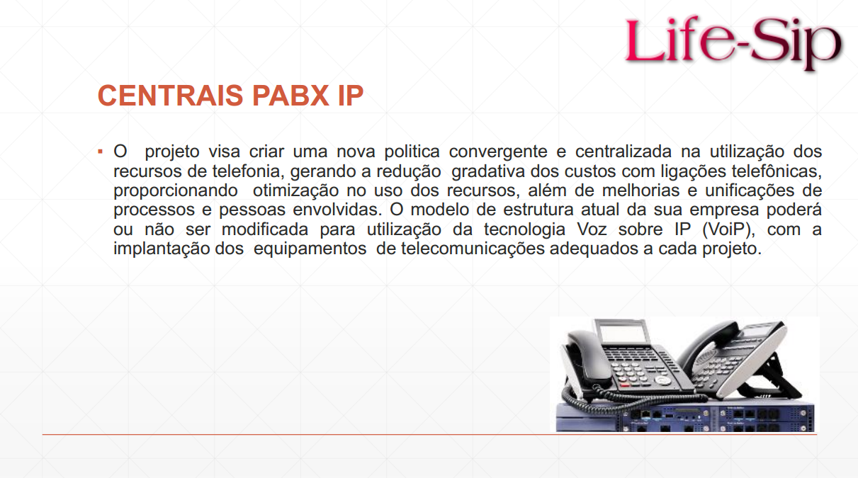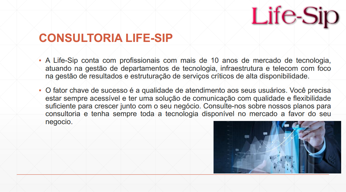 Os sistemas Life-Sip oferecem alta qualidade, confiabilidade e ainda uma extensa gama de facilidades que suportam todos os processos de comunicação.